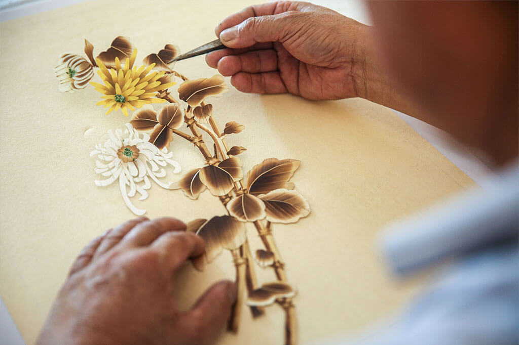 麥草畫始于隋唐時代的宮廷工藝品,是以麥秸稈為造型原料,運用麥稈的自然光澤和紋理、質地,創(chuàng)造性融入國畫、油畫等諸多技術技法,經過熏、蒸、漂等三十多道工序純手工制作而成。2011年,泊里“麥草畫”入選“國禮作品選”,2018年被確定為上合青島峰會國禮贈送各國領導人。